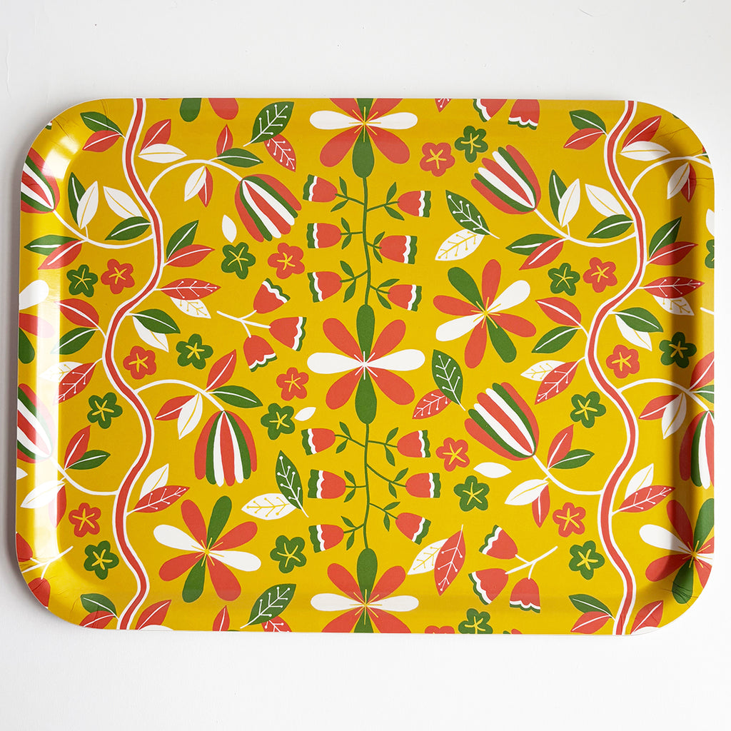 Our durable birch wood trays are strong and adaptable to a variety of uses. Use it for a meal in front of the fire (or television), place it in your craft room to hold odds and ends, or display it as a beautiful home décor piece. Available in Marine Blue or Gold.